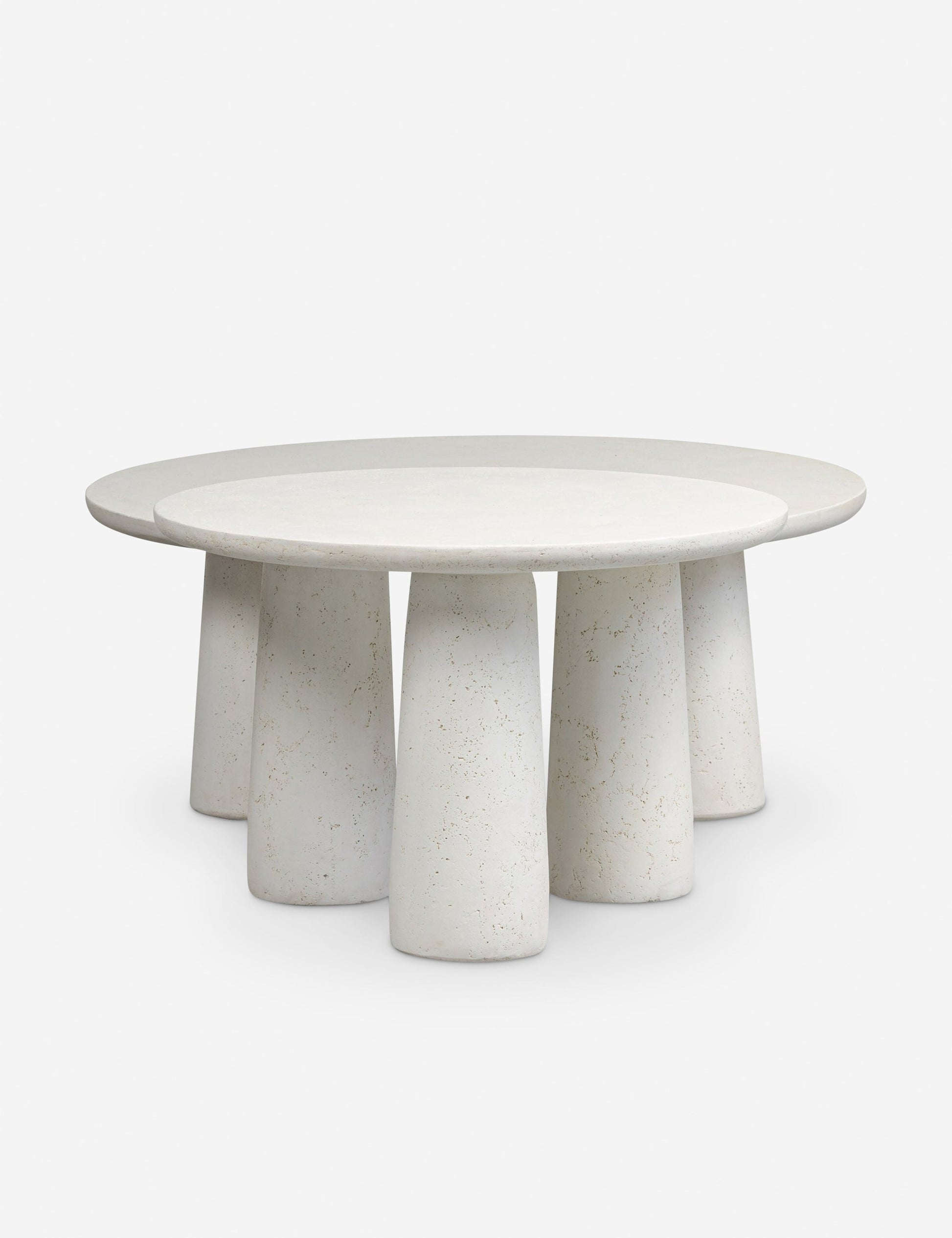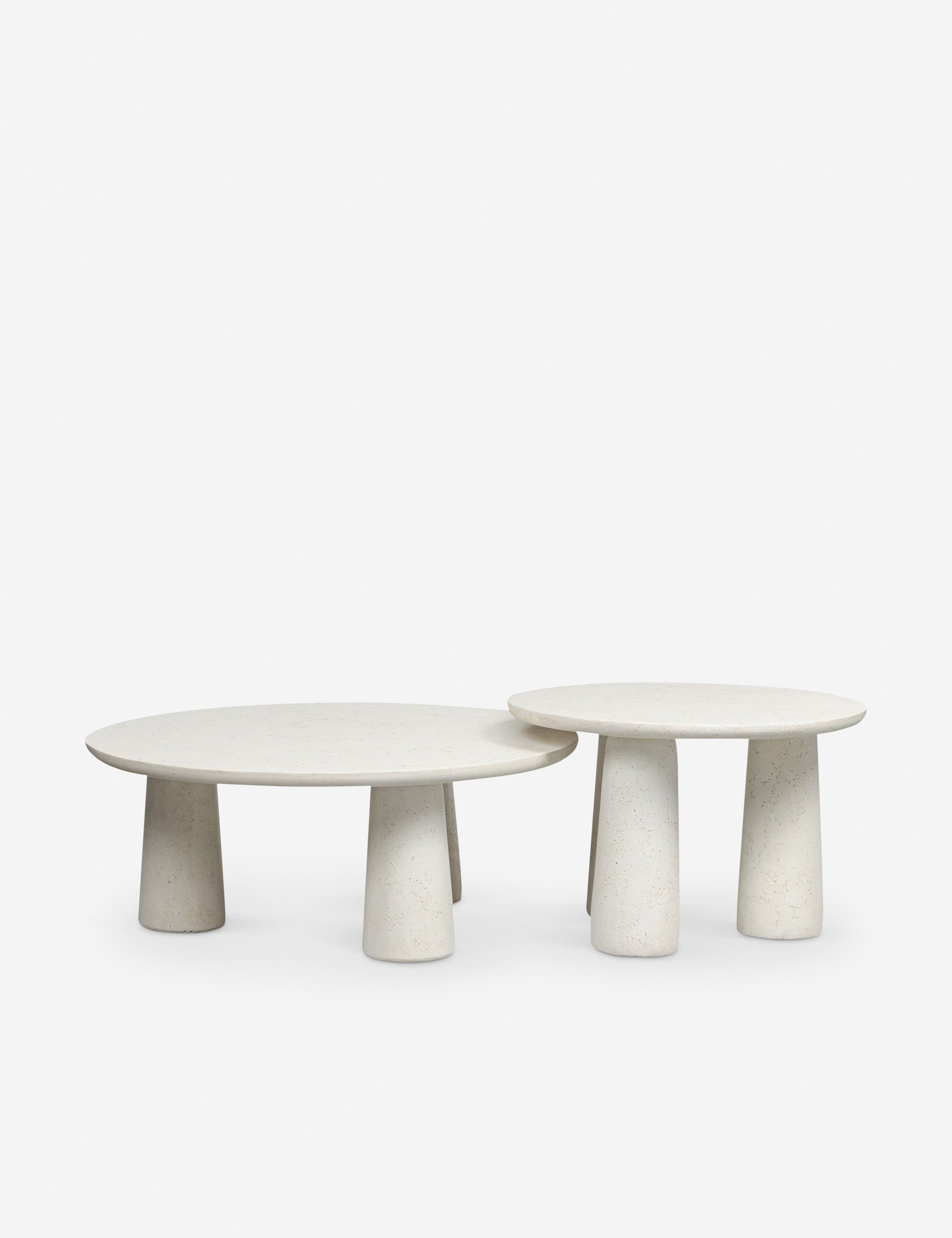 Ces tables basses en béton apportent texture et mouvement à votre salon de jardin. Fabriquées en béton ivoire, elles présentent un plateau arrondi et des pieds fuselés pour un look doux et sculptural. Associez ces tables basses gigognes ensemble ou placez-les séparément pour créer un aménagement extérieur dynamique.