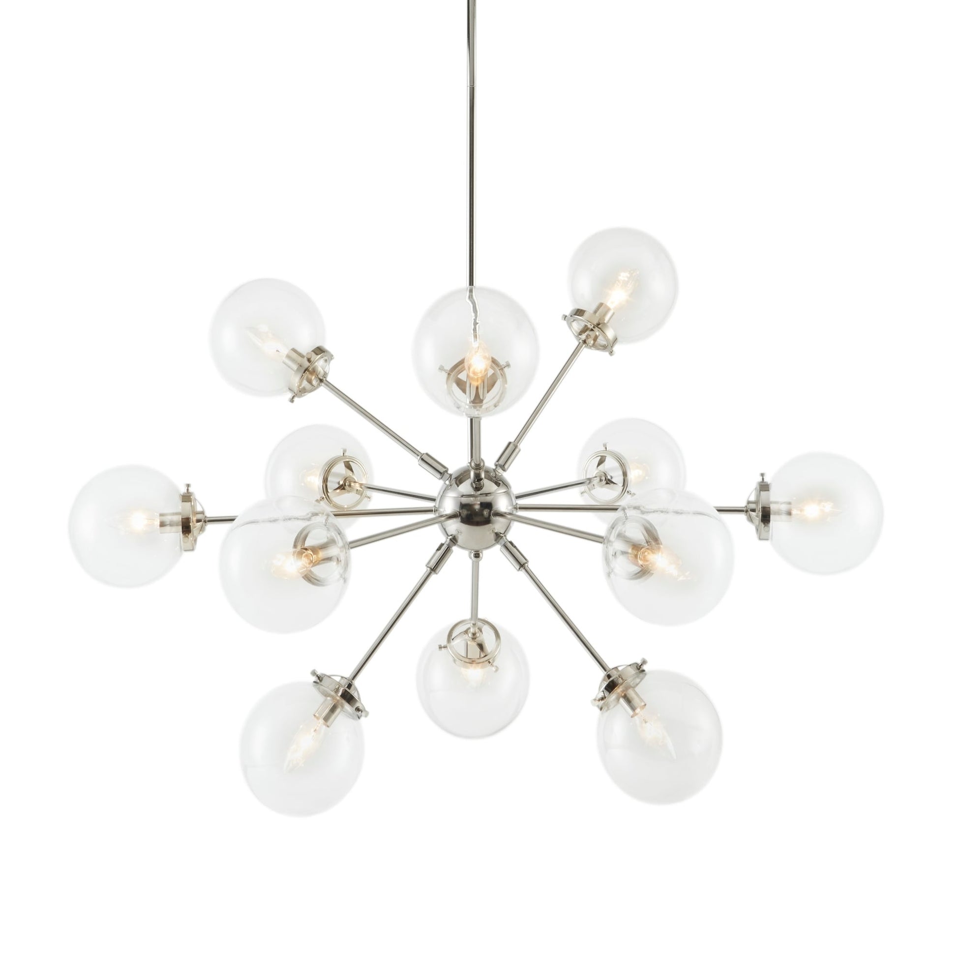• Lustre moderne du milieu du siècle avec 12 ampoules rondes transparentes surdimensionnées