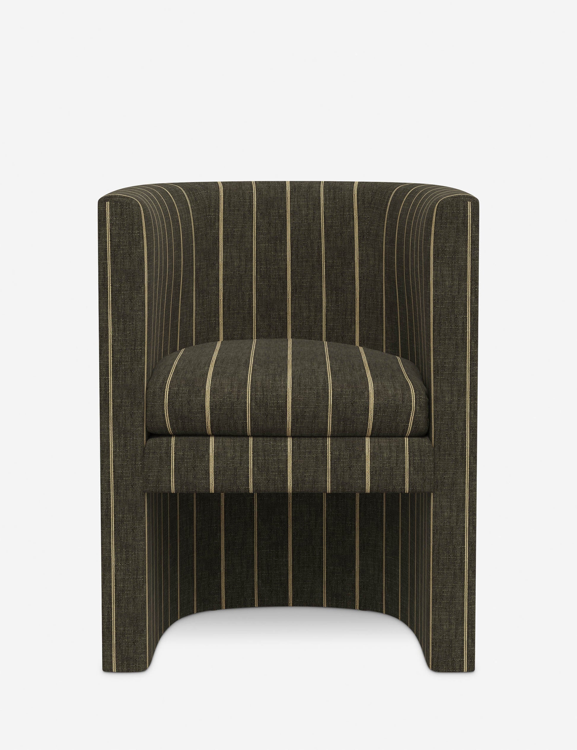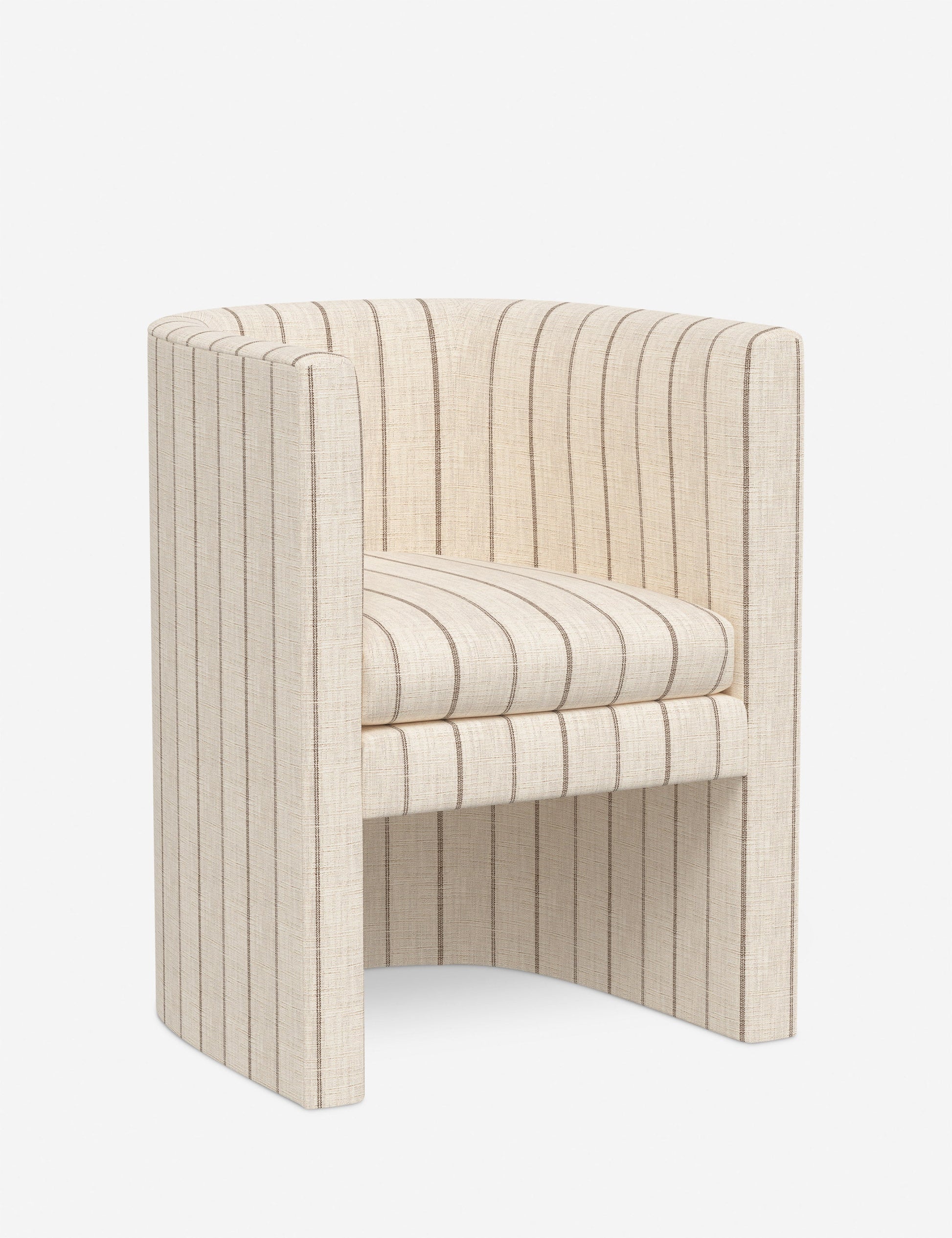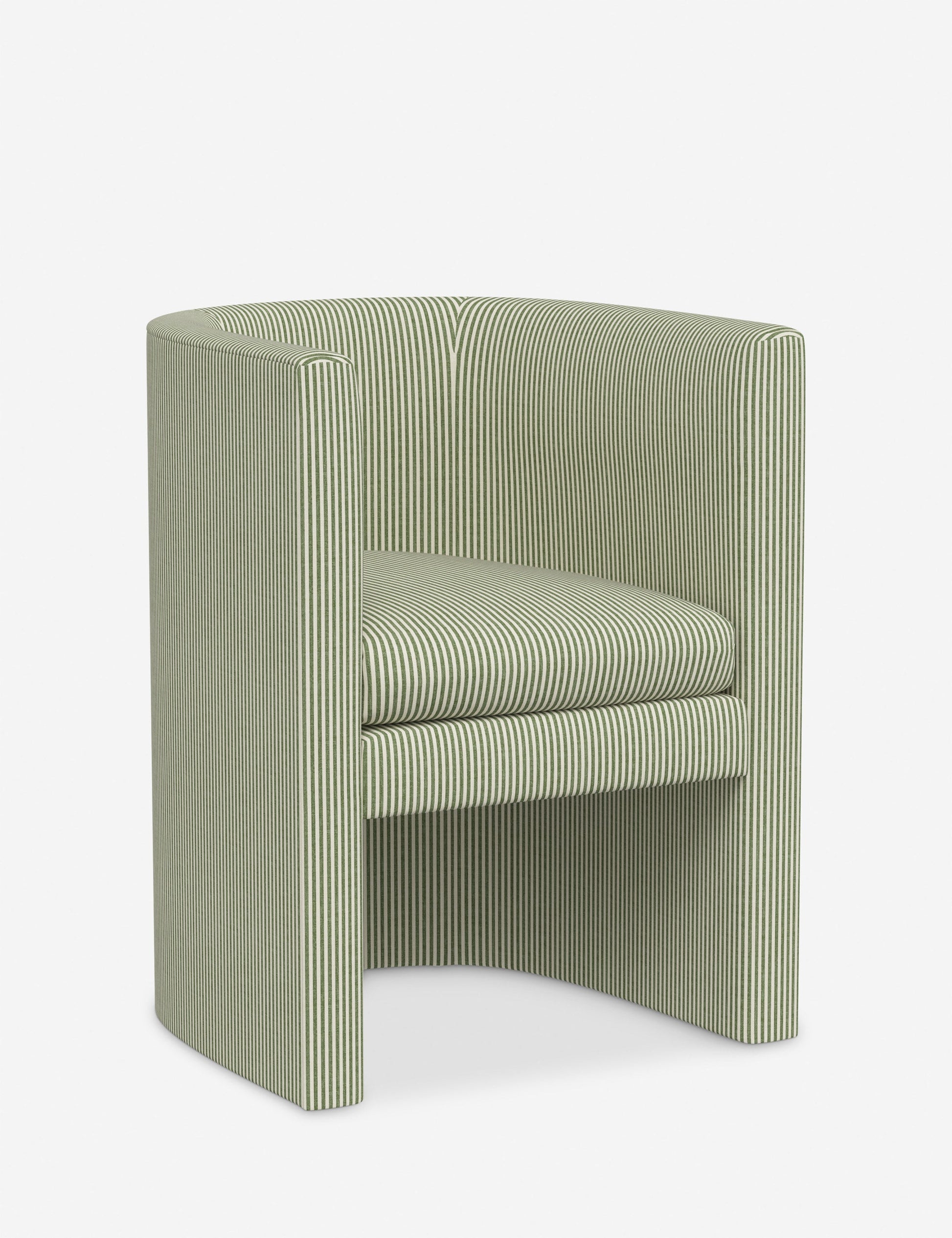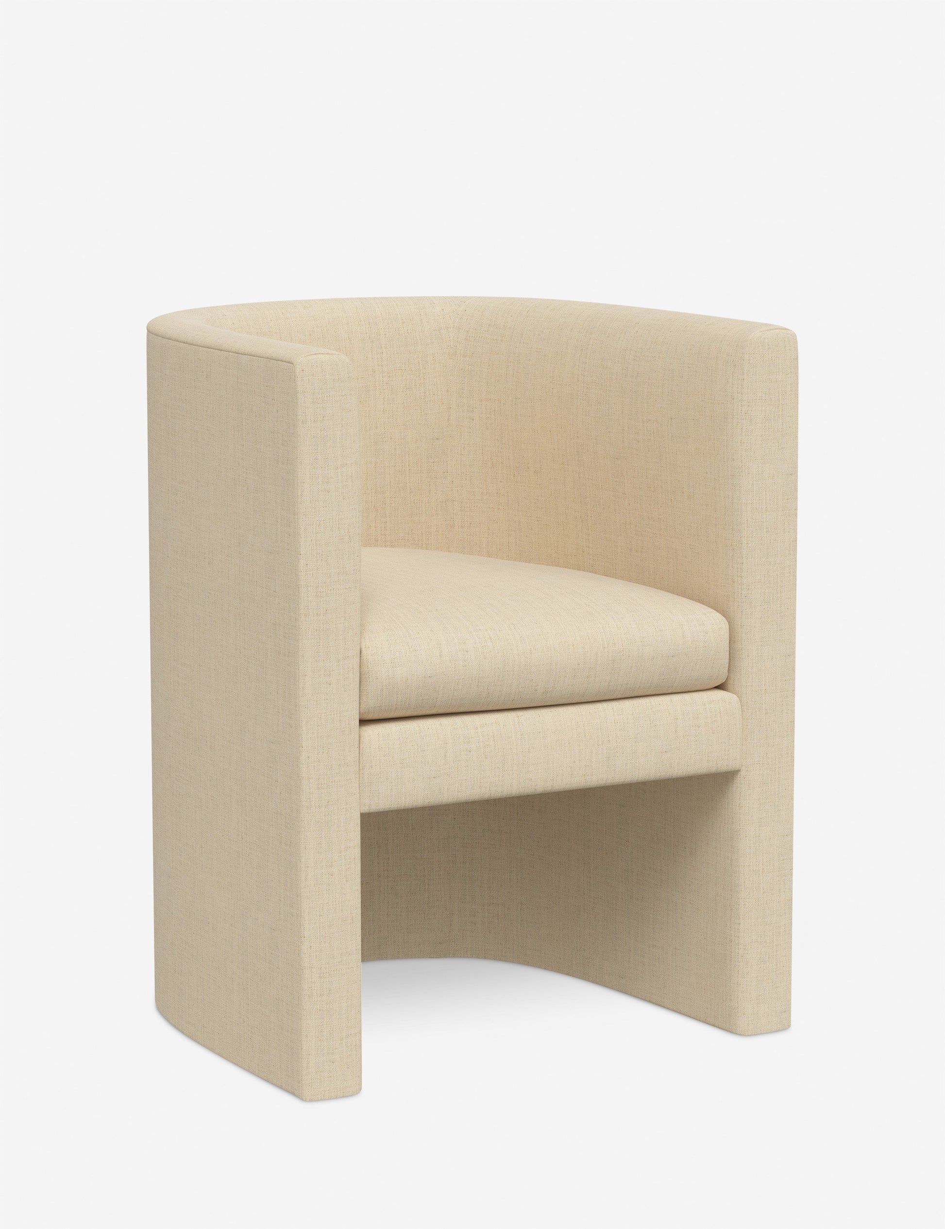 Enfield est une chaise de salle à manger à dossier tonneau à l'allure moderne. Son profil ouvert et son assise rembourrée sont recouverts d'un revêtement sur mesure. Vous pouvez ainsi personnaliser cette chaise chic selon votre style pour un équilibre parfait entre confort et impact.