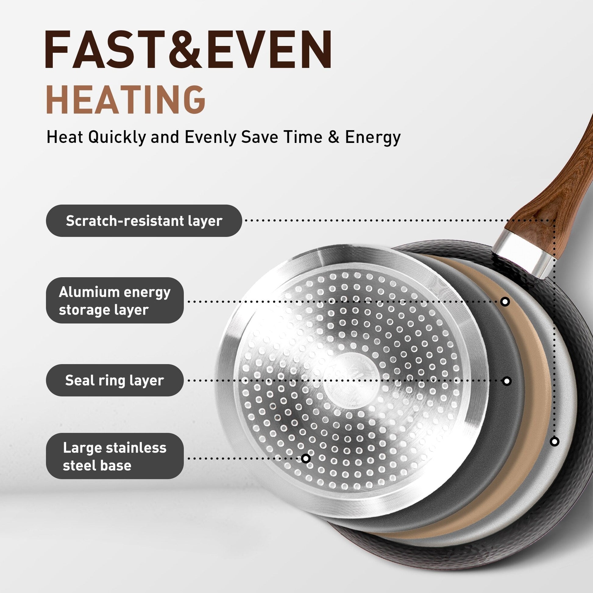 • La conception du fond en aluminium offre une répartition uniforme de la chaleur et une conductivité