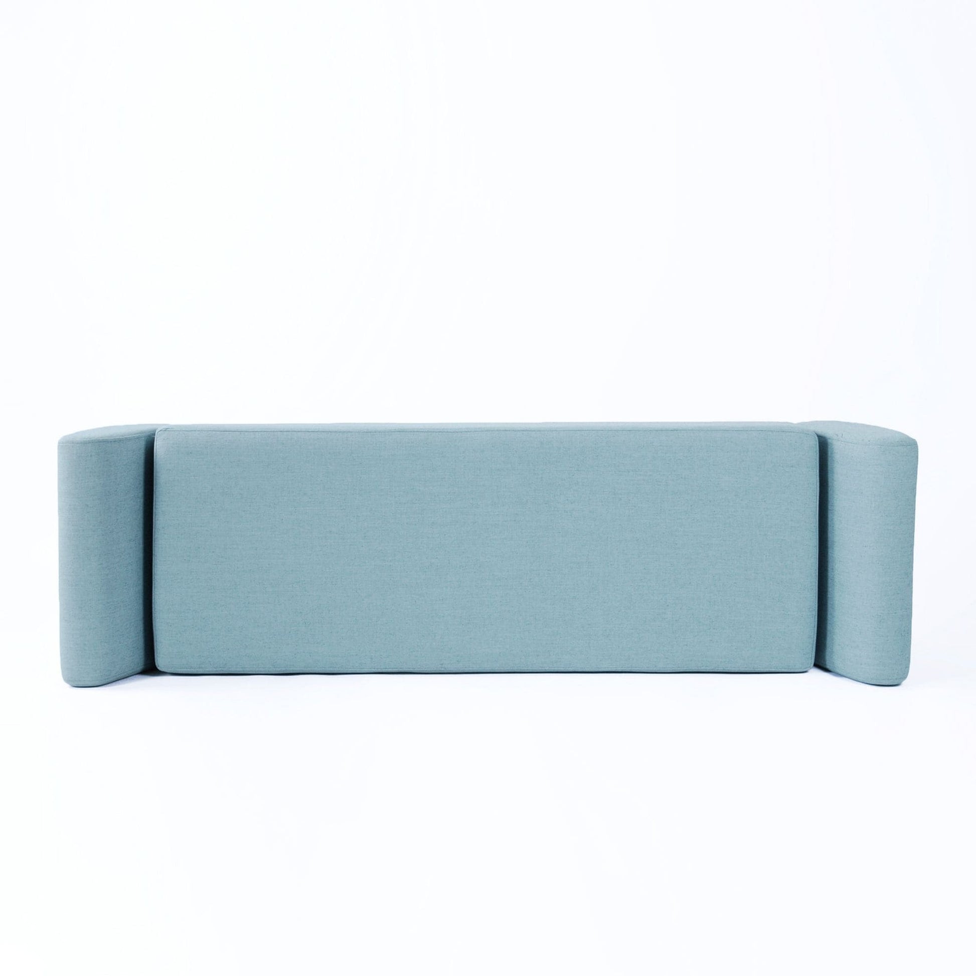 • Tissu tissé bleu français avec pieds en bois au fini naturel