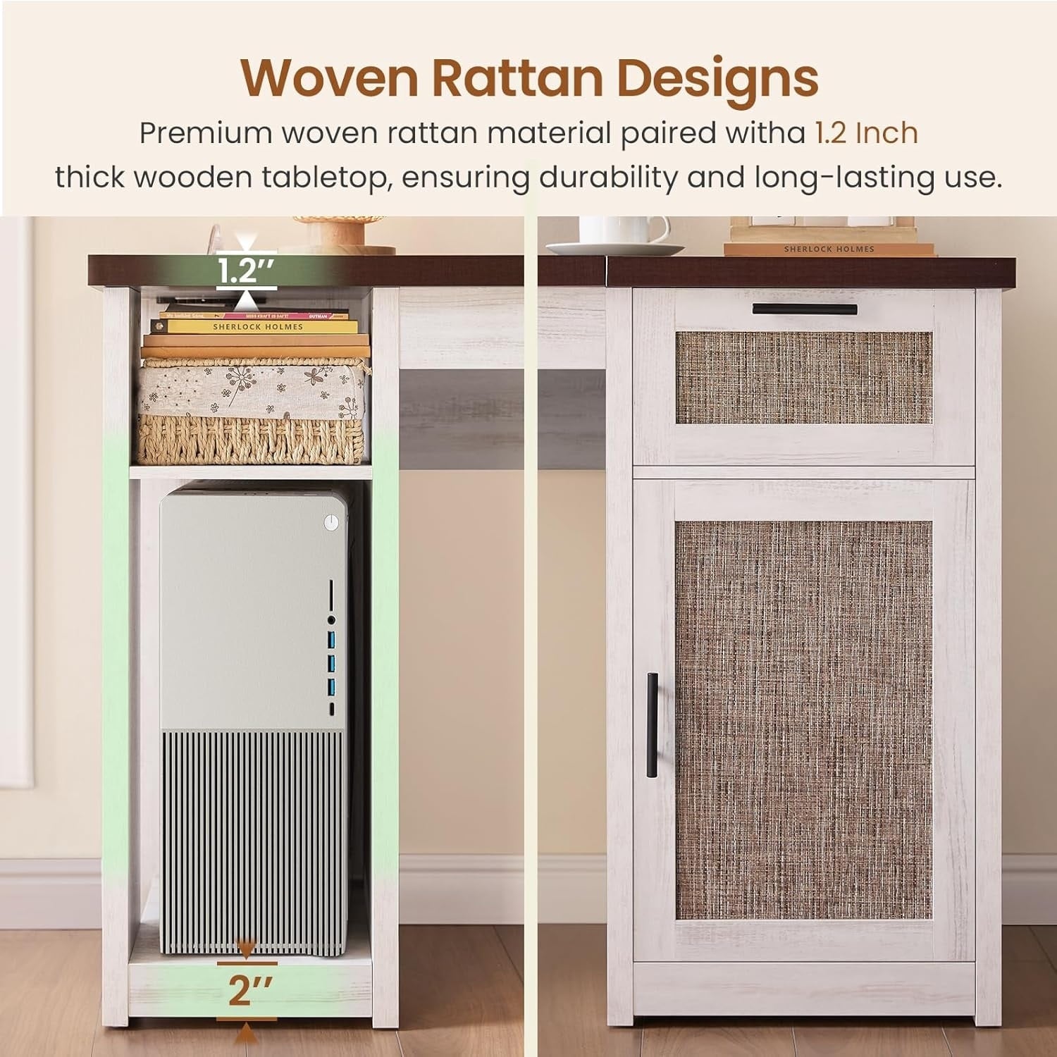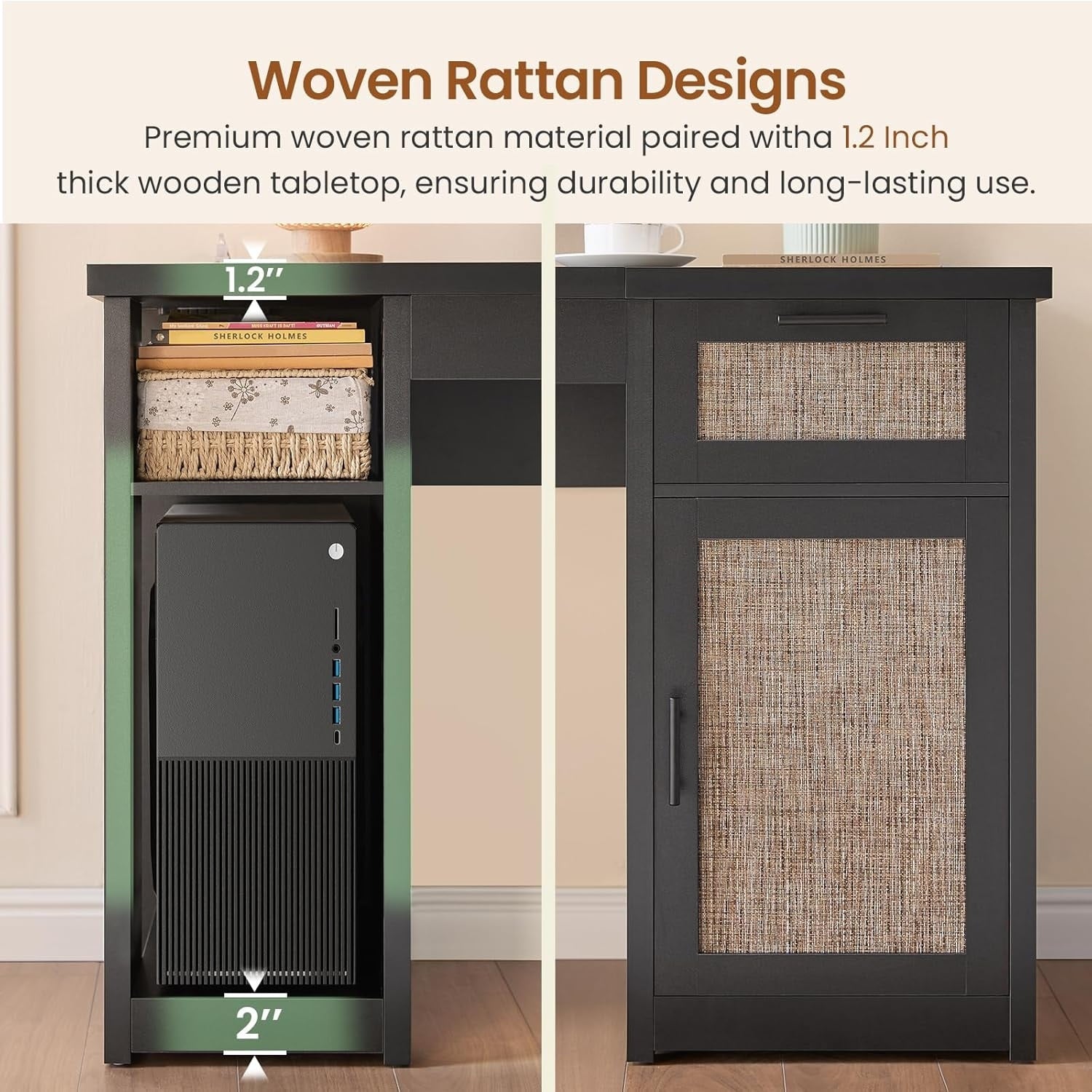• Construction solide et matériaux de haute qualité : Fabriquée en bois de haute qualité, sa structure robuste et son plateau épais assurent durabilité et stabilité. Les tiroirs et les rangements offrent une organisation pratique pour un espace de travail bien rangé.