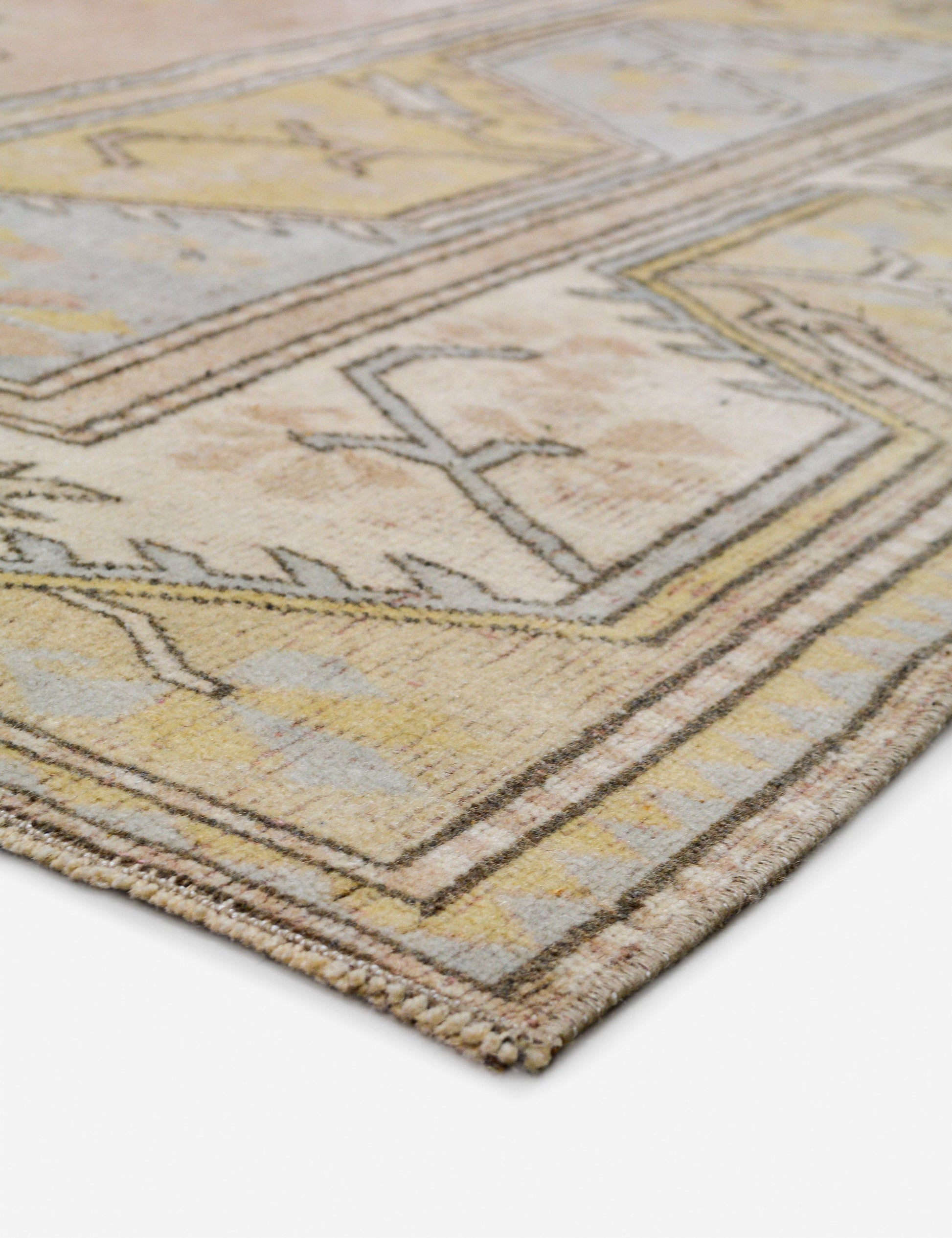 Un tapis vintage en laine transforme instantanément votre espace : il apporte chaleur et couleurs riches, tout en vous laissant l'impression d'être une découverte venue de loin. Entièrement fabriqué à la main en Turquie, ce tapis de sol noué main est un véritable investissement pour votre intérieur, une pièce maîtresse unique et époustouflante à laquelle vous pourrez ajouter votre touche personnelle.